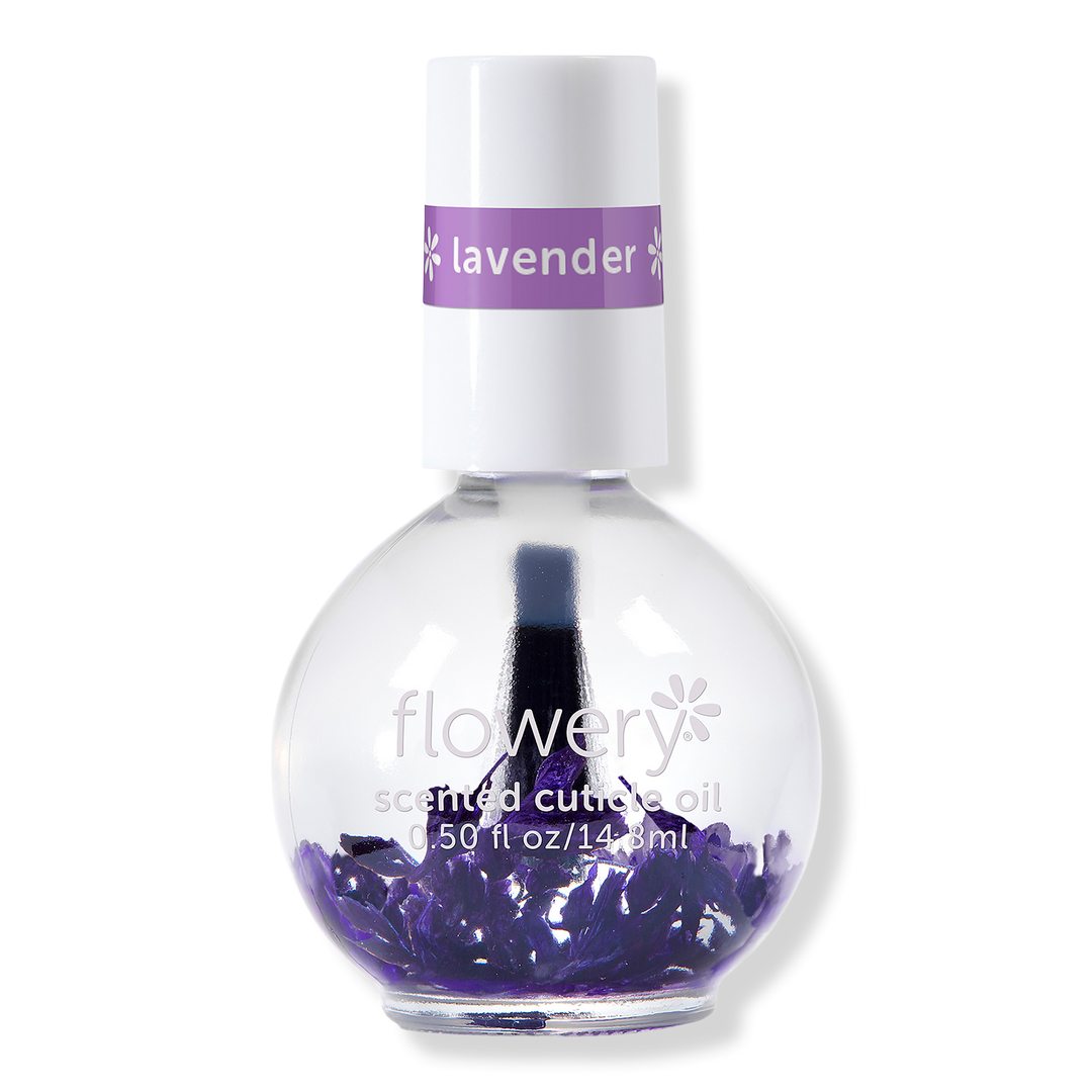 Nourish dry cuticles with Flowery Scented Cuticle Oil - infused with Vitamin E and Jojoba, in refreshing Eucalyptus, Lavender, and Rose scents.