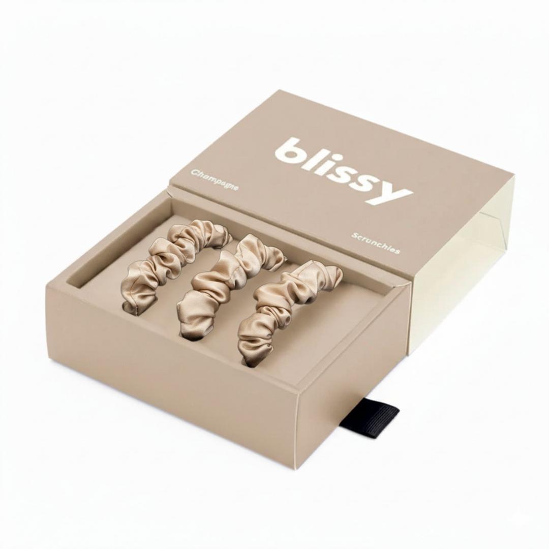 Blissy Silk Scrunchies are made from 100% pure mulberry silk to prevent creases, breakage, and frizz—keeping your hair smooth, shiny, and effortlessly styled.