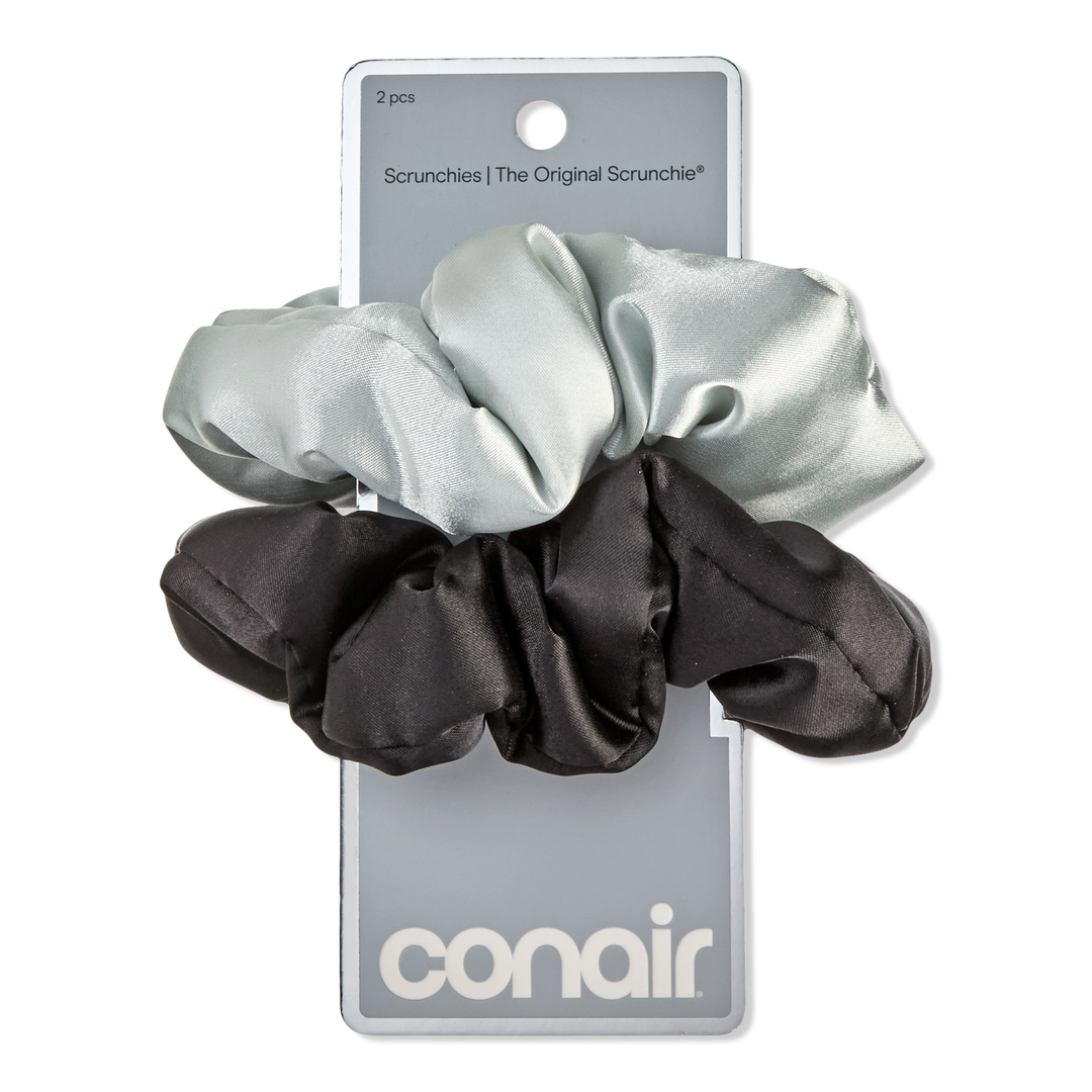 - Includes one black and one silver scrunchie in soft satin fabric
