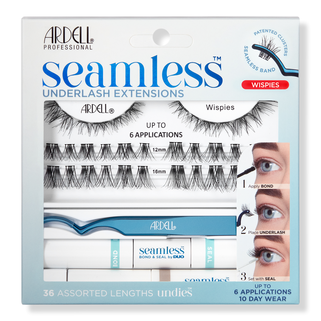 Ardell Seamless Underlash Extension Kit - Wispies lengthens and adds volume to your lashes in minutes, and no one will know with the Gorgeous NO SHOW Seamless Extensions.
