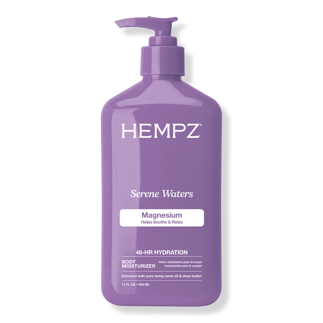 Help soothe aching muscles and melt away stress with Hempz Serene Waters with Magnesium Body Moisturizer! This ultra-light, fast-absorbing body lotion hydrates and smooths skin. Infused with Magnesium, Arnica, Electrolytes, Lavender Oil, Hemp Seed Oil, and Shea Butter to help keep skin moisturized.