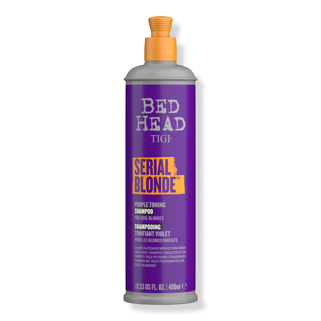Bed Head's specially-formulated Serial Blonde Purple Toning Shampoo is powered by purple toners to banish yellow tones and brighten blonde hair in just one wash.