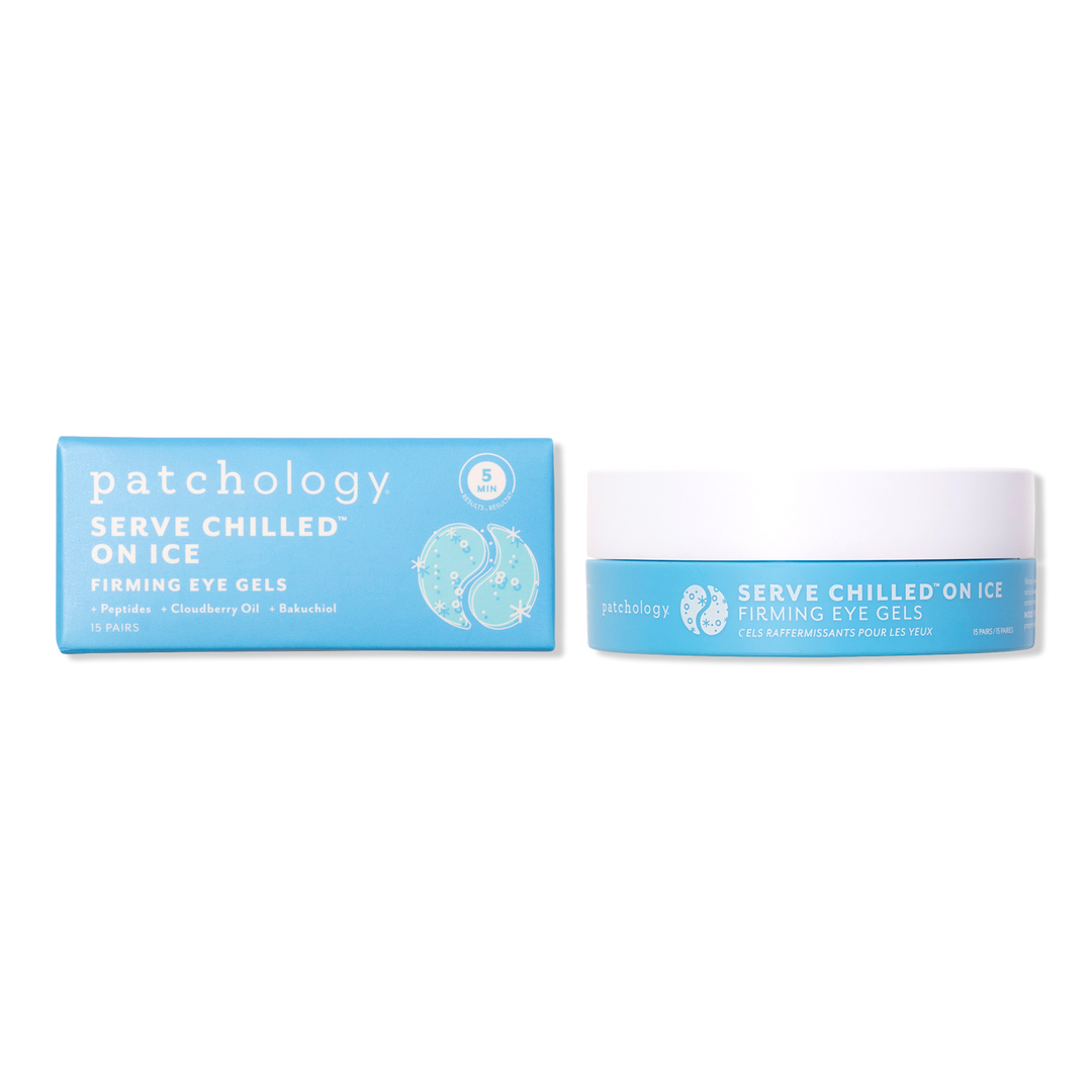 Patchology Serve Chilled On Ice Cooling & Firming Under Eye Gel Patches deliver instant depuffing & cooling to tired, dull under eyes in 5 minutes. Formulated with plant-based Bakuchiol for gentle smoothing plus a supercharged cocktail of depuffing Peptides & brightening Cloudberry Extract.