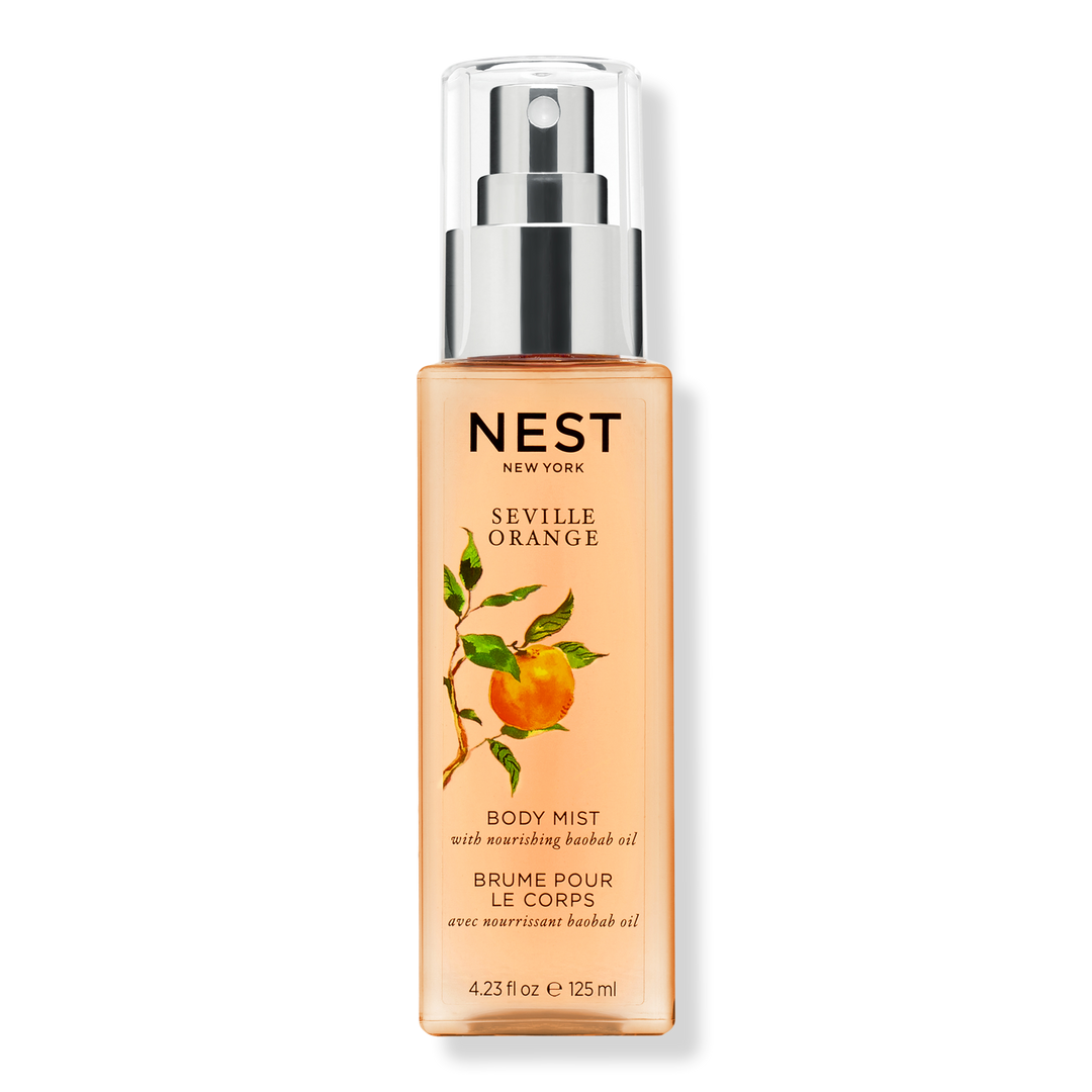 Seville's vibrant spirit comes to life through NEST New York's lightweight Seville Orange Body Mist featuring notes of effervescent orange zest, tart pink grapefruit, and juicy mandarin with floral neroli and cedarwood.