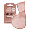 Place your Kitsch Solid Shampoo Bar in the bag. Feed the long side through the center hole on the short side to form a top loop. Wear the loop around your wrist and wet the bag. Rub the bag and bar between both hands, then gently massage through your hair. Hang your bar in the bag to help it dry quickly and last longer.