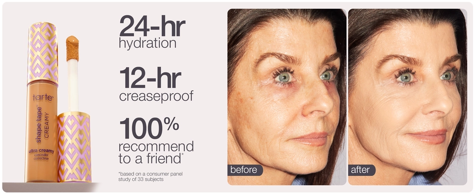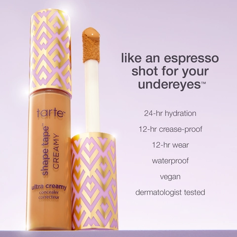 tarte's iconic Shape Tape Concealer, now with a built-in eye cream for 24-hr hydration. Full coverage to conceal dark circles. Best for dry skin.