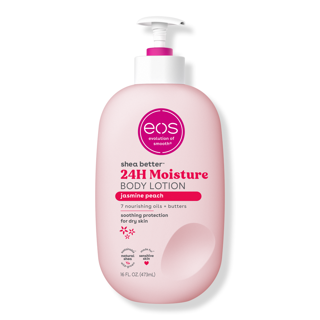 Eos Shea Better 24HR Moisture Body Lotion with instantly moisturizing Shea Oil + lasting protection Shea Butter quickly absorbs for 24-hour hydration. Say hello to… fast-absorption, lightweight, soft skin, and sustainable shea. Say goodbye to… greasiness, heaviness, and sticky residue.
