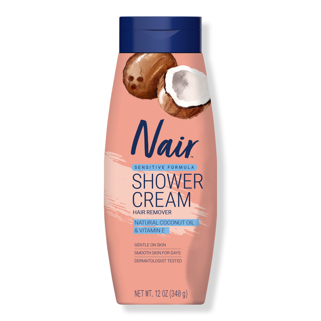 Nair Sensitive Formula Hair Removal Shower Cream with Coconut Oil and Vitamin E is a gentler hair removal formula that works while you shower!