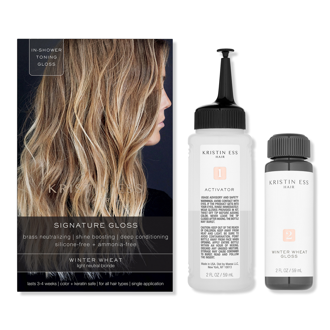 Kristin Ess Hair's Signature Hair Gloss - Shine Boosting + Tone Enhancing, Ammonia Free is an in-shower treatment formulated to instantly boost vibrancy + shine.
