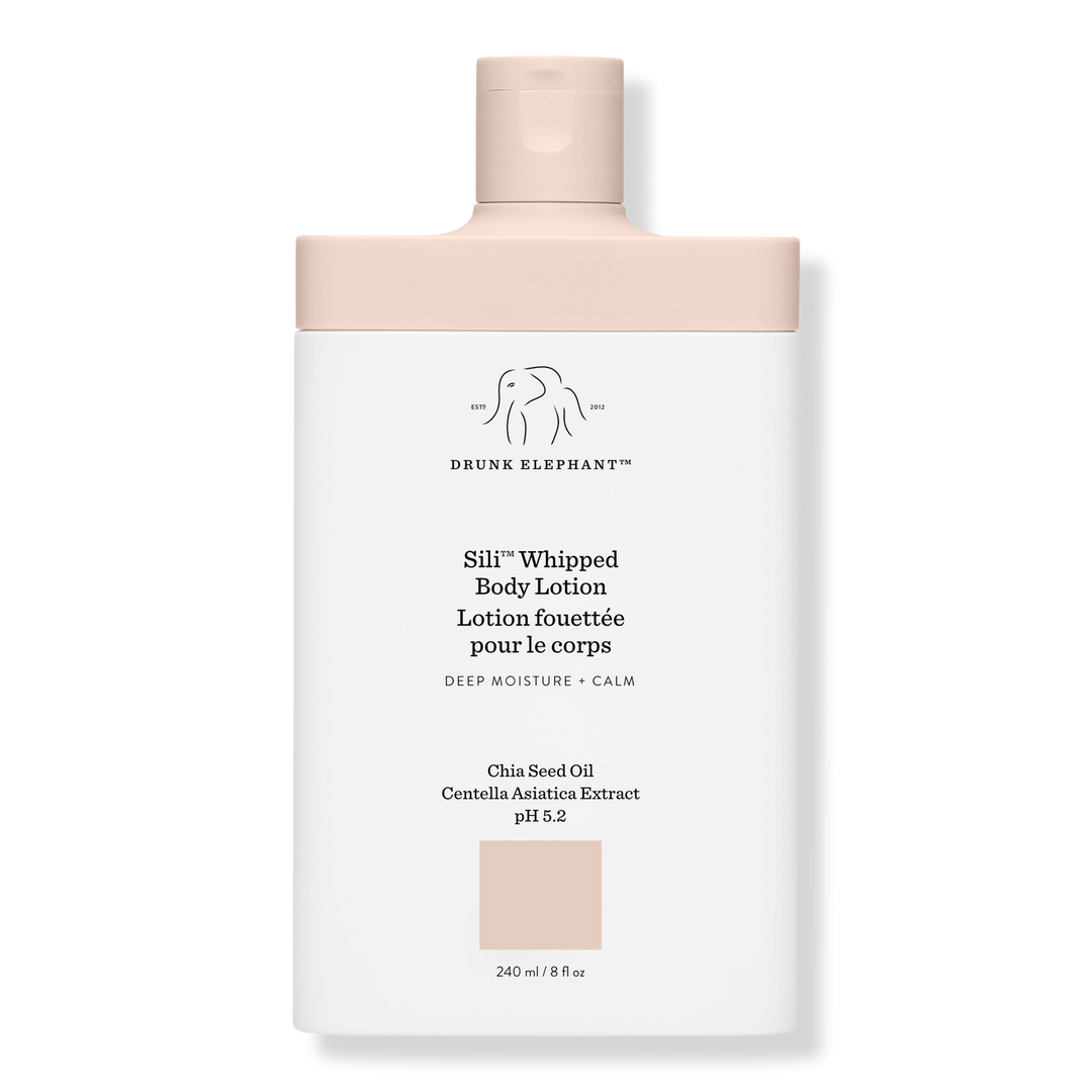 Drunk Elephant's Sili Whipped Body Lotion is comforting, antioxidant-rich, and deeply moisturizes, replenishes, and soothes with a mild, naturally sweet vanilla scent.