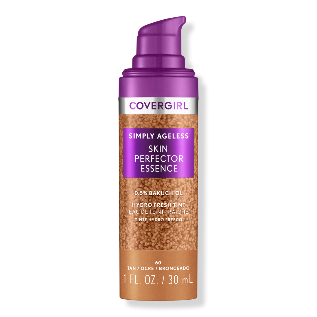 CoverGirl Simply Ageless Skin Perfector Essence, a skincare + makeup hybrid with microdroplet technology, gives your complexion a radiant bare-skin filter effect. A liquid foundation with pigmented capsules burst and blend easily to distribute a sheer, even tint that makes skin look plump.