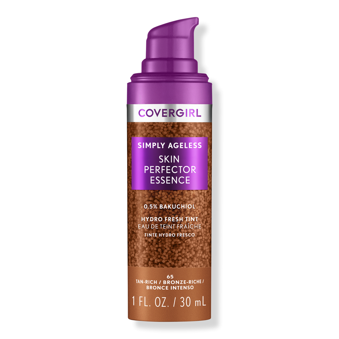 CoverGirl Simply Ageless Skin Perfector Essence, a skincare + makeup hybrid with microdroplet technology, gives your complexion a radiant bare-skin filter effect. A liquid foundation with pigmented capsules burst and blend easily to distribute a sheer, even tint that makes skin look plump.