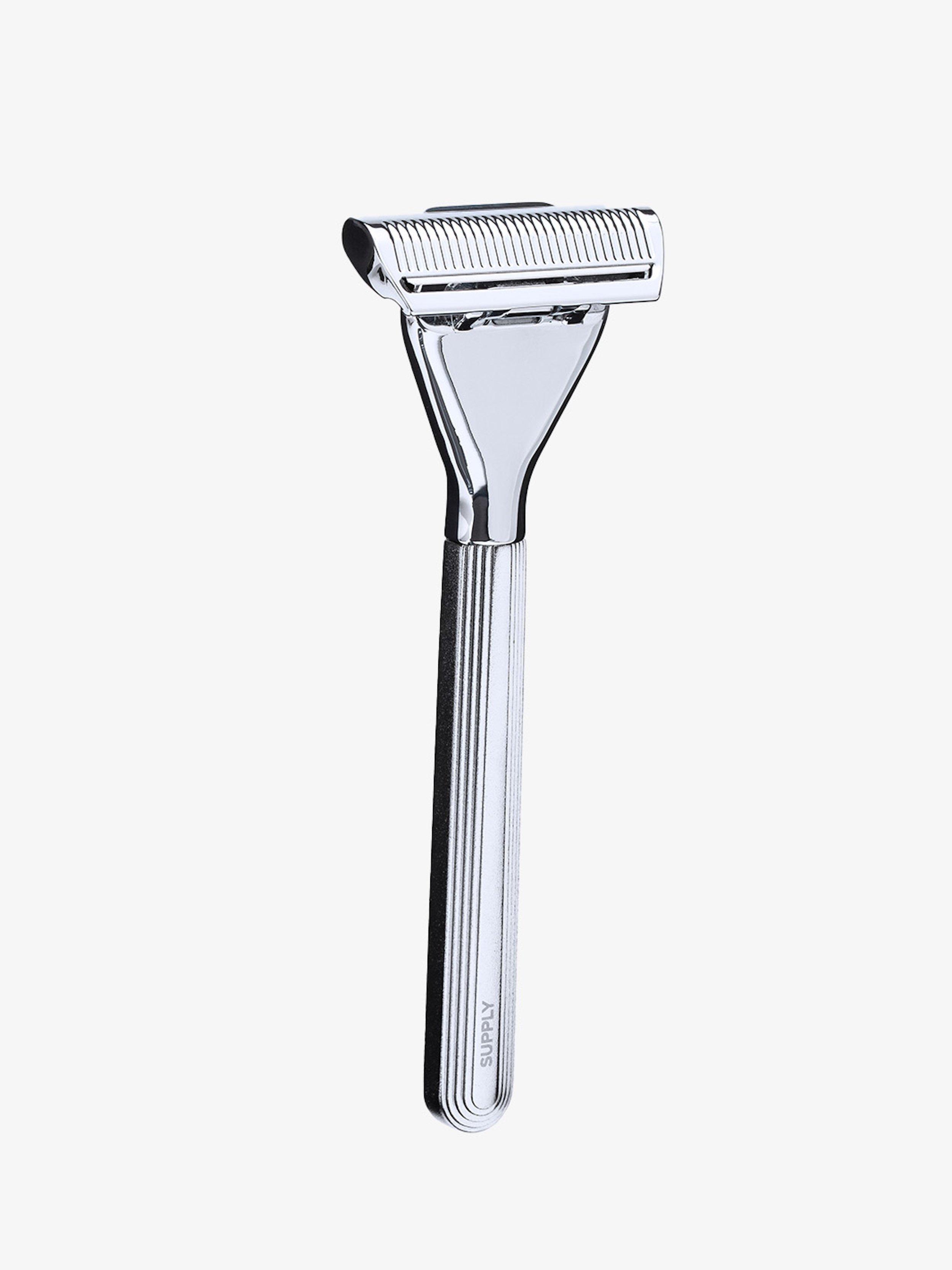 Meet the SUPPLY Single Edge Max: a solid-metal, single-blade razor with a pivoting head for a closer, smoother shave with fewer nicks and less irritation. Single-blade precision plus controlled pivoting keeps the right angle for an ultra-close shave.