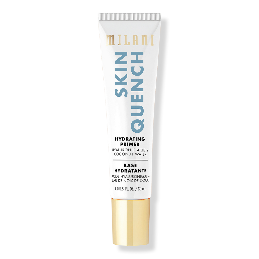 Milani Skin Quench Primer hydrates with Hyaluronic Acid and Coconut Water. An essential makeup-prep step, it blurs imperfections and extends makeup wear.