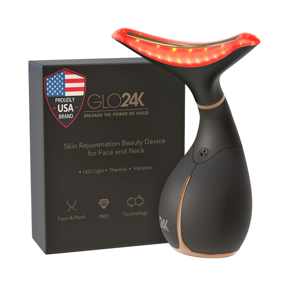 - The GLO24K Neck and Face LED Beauty Device is easy to use, travel-friendly, lightweight, rechargeable, and ergonomically designed