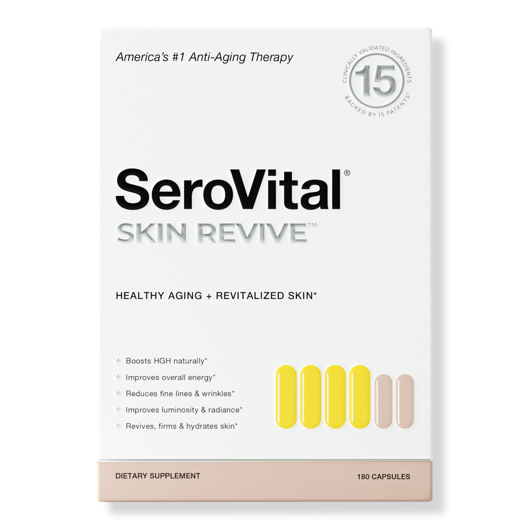 This two-part Skin Revive Supplement works around the clock to help you rediscover your youthful vitality. It includes the clinically validated SeroVital formula that millions of customers have used and loved for years, along with the upgrade of a formula for targeted skin improvements.