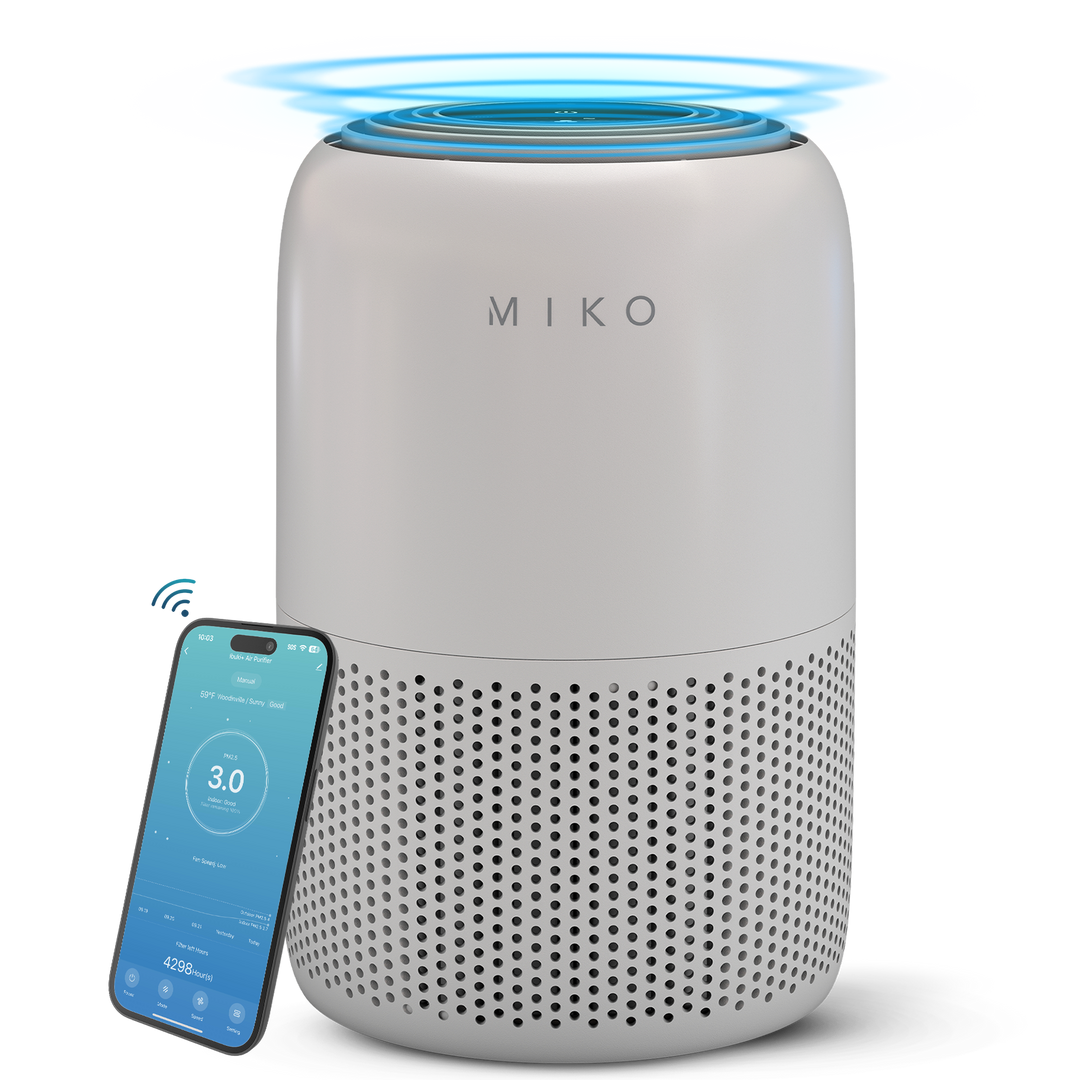 The Miko Smart True HEPA Air Purifier delivers fresh, clean air for spaces up to 770 sq. ft. Its 3-stage filtration removes 99.97% of dust, allergens, and odors, while app control, air quality indicators, and whisper-quiet operation make it simple to maintain a healthier, more comfortable home.