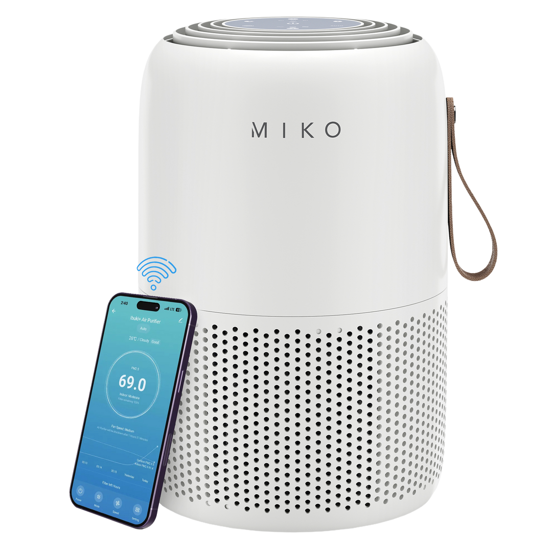 The Miko Smart True HEPA Air Purifier delivers clean, fresh air for spaces up to 770 sq. ft. Its 3-stage filtration removes 99.97% of dust, allergens, and odors, while app control, air quality indicators, and whisper-quiet operation make it easy to maintain a healthier, more comfortable home.