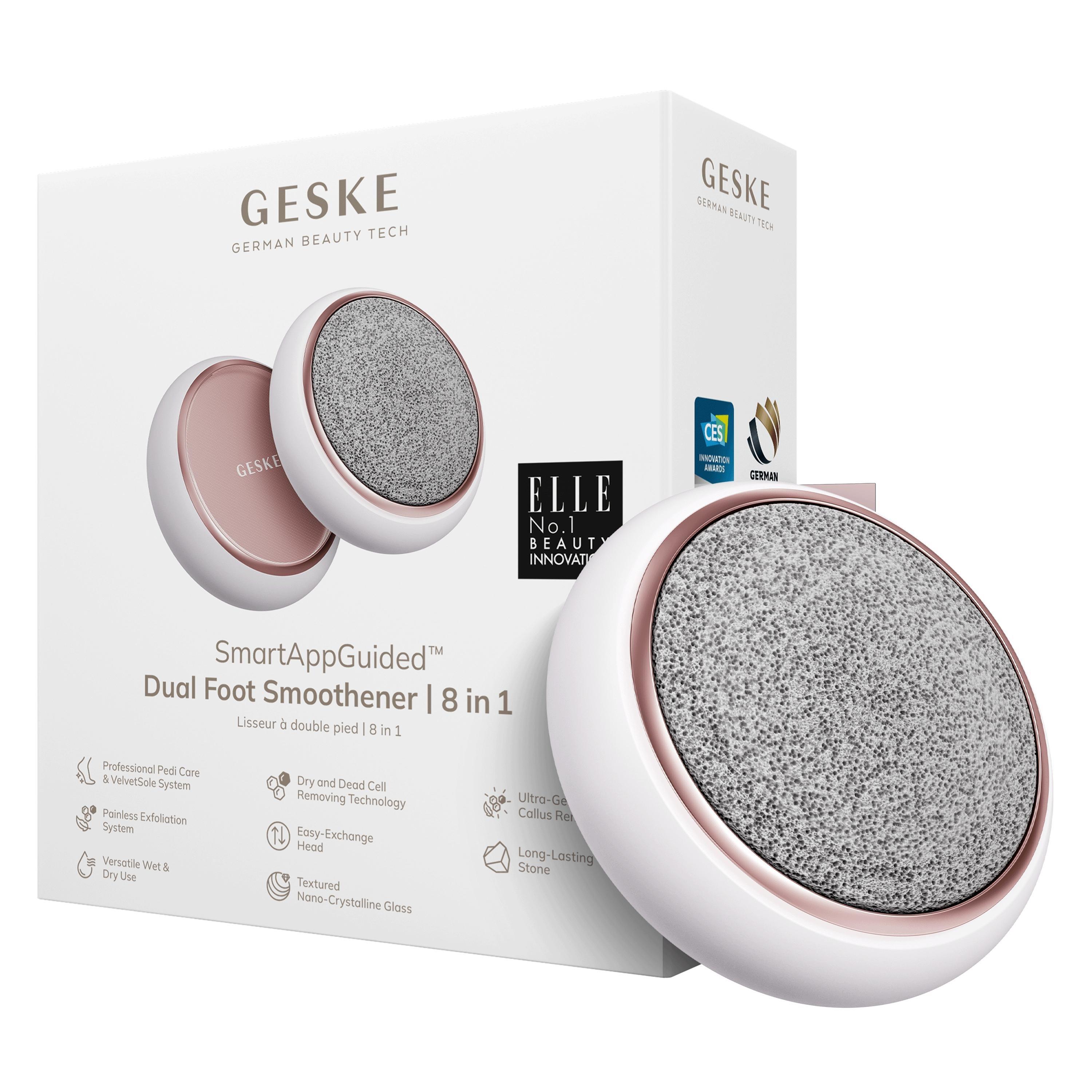 Do you dream of silky-smooth feet? Then the GESKE Dual Foot Smoothener is a must-have! It features high-quality pumice stone and nano crystal glass attachments that can be easily replaced using the click system. Reveal velvety soft soles in no time with this magical, two-sided foot exfoliator.