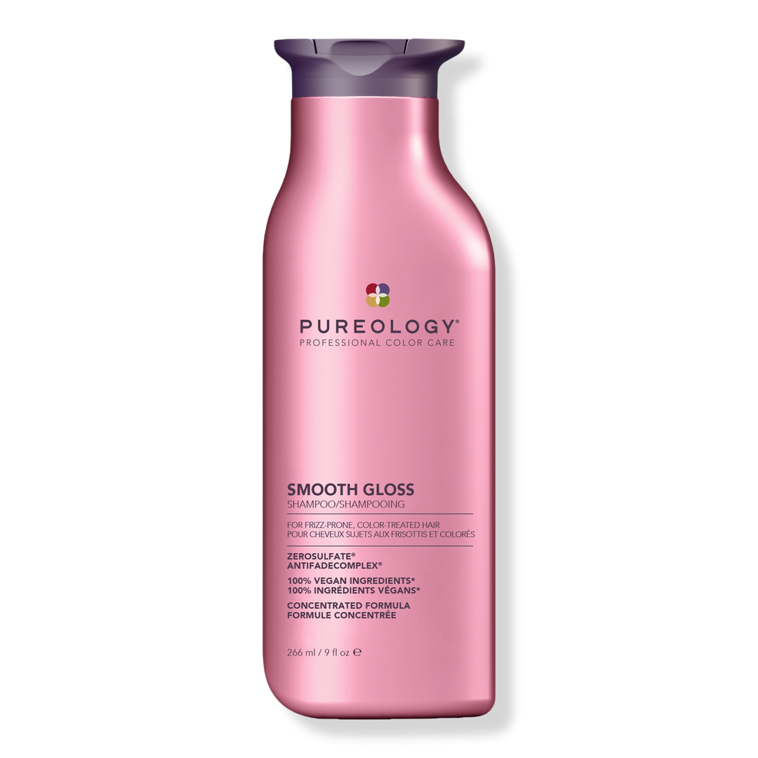 Pureology Smooth Gloss Shampoo is a luxurious, sulfate-free formula that controls frizz and boosts shine for color-treated, frizz-prone hair. Enjoy up to 72-hour frizz-defying performance, 8x smoother hair and +50% glossier shine.