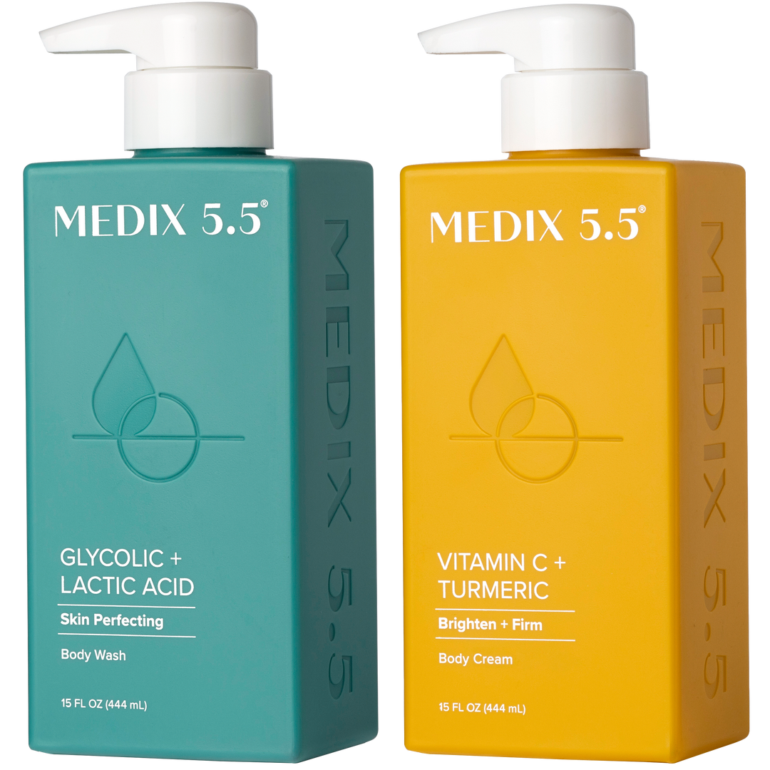 Medix 5.5Â Smooth + Glow Duo | Glycolic + Lactic Acid Body Wash, Vitamin C + Turmeric Body Cream