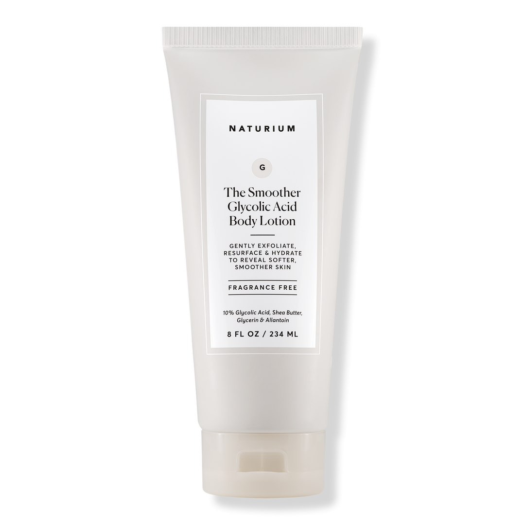 The Smoother Glycolic Acid Body Lotion from Naturium exfoliates and resurfaces to reveal softer skin. Formulated with high-purity 10% glycolic acid, this lotion works to smooth texture and brighten tone, decreasing the appearance of dark spots.