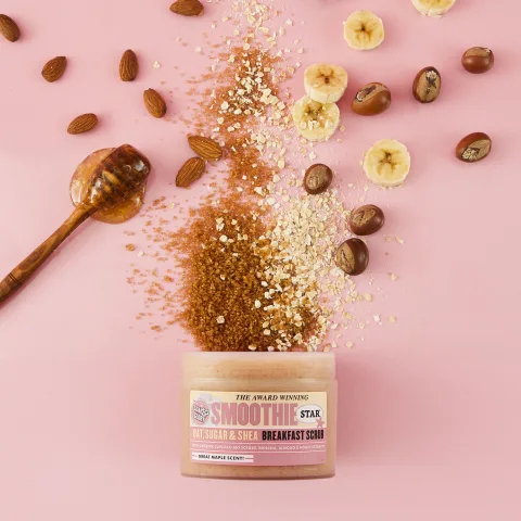 Wake up and soak up Soap & Glory's award-winning body exfoliator, the Smoothie Star Breakfast Scrub, that gently polishes and moisturizes skin. With a skin-smoothing blend of golden sugar, oatmeal grains and cupuacu, it also nourishes with bananas, almond and honey extracts. *Packaging may vary.