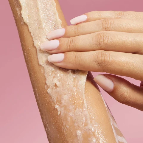 More soften than not: Scoop out a handful of scrub, rub it between your palms, then scrub in circles onto damp skin until you feel smoother. Rinse well, and follow with a body butter or lotion.