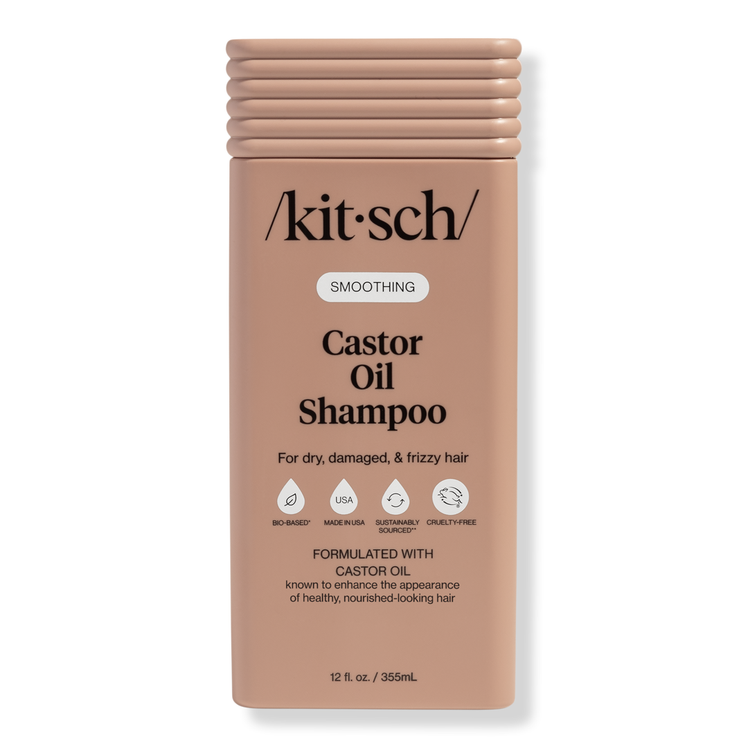 Refresh hair with Kitsch Smoothing Castor Oil Shampoo! Formulated with Castor Oil, known to enhance the appearance of healthy, nourished-looking hair and perfect for dry, damaged, & frizzy hair to reveal softer, smoother strands. Clean & color-safe formula in PCR packaging.