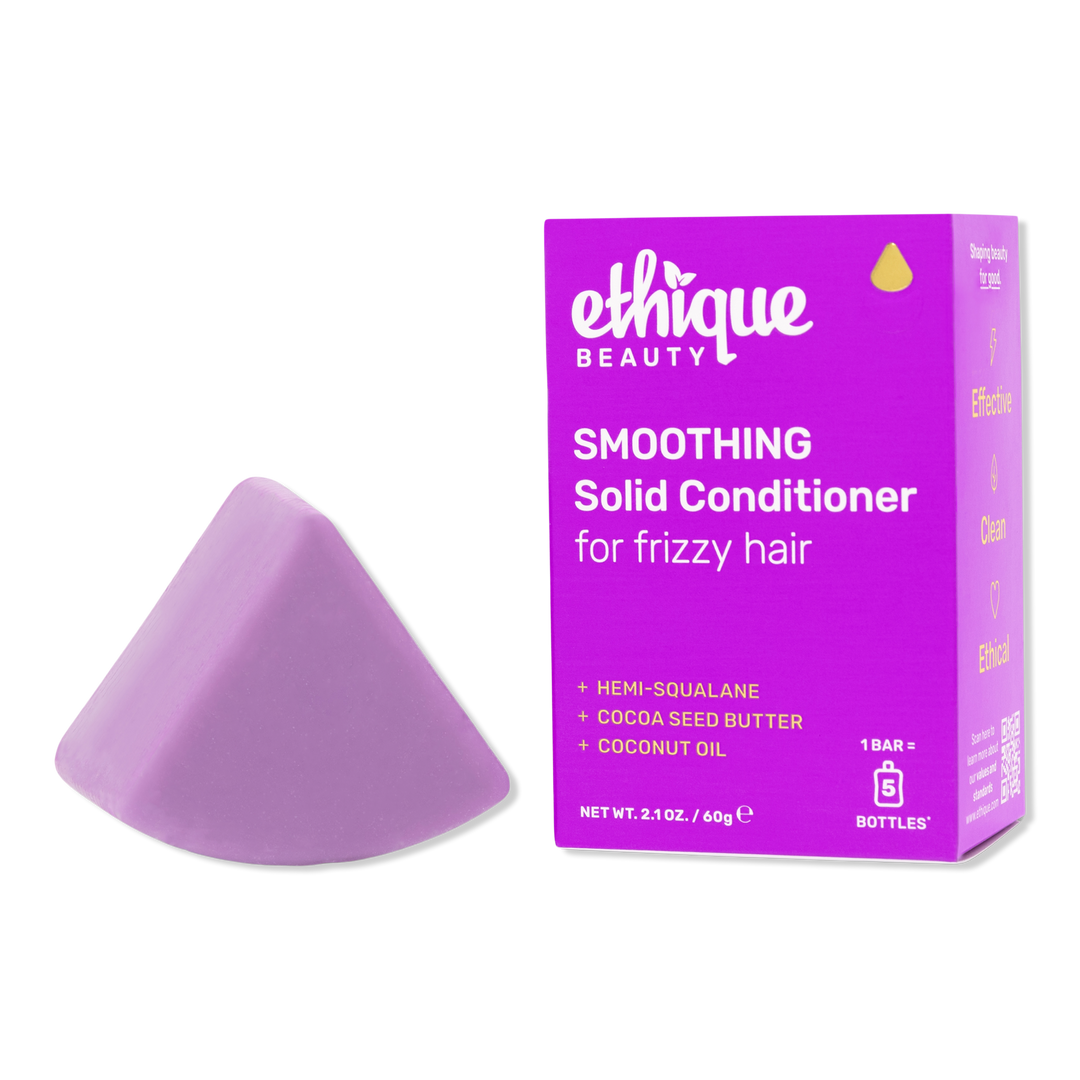 Ethique Beauty's Smoothing Conditioner banishes frizz while leaving hair silky soft. Cocoa seed butter shields while hemi-squalane infuses moisture, gifting you glossy, resilient locks.