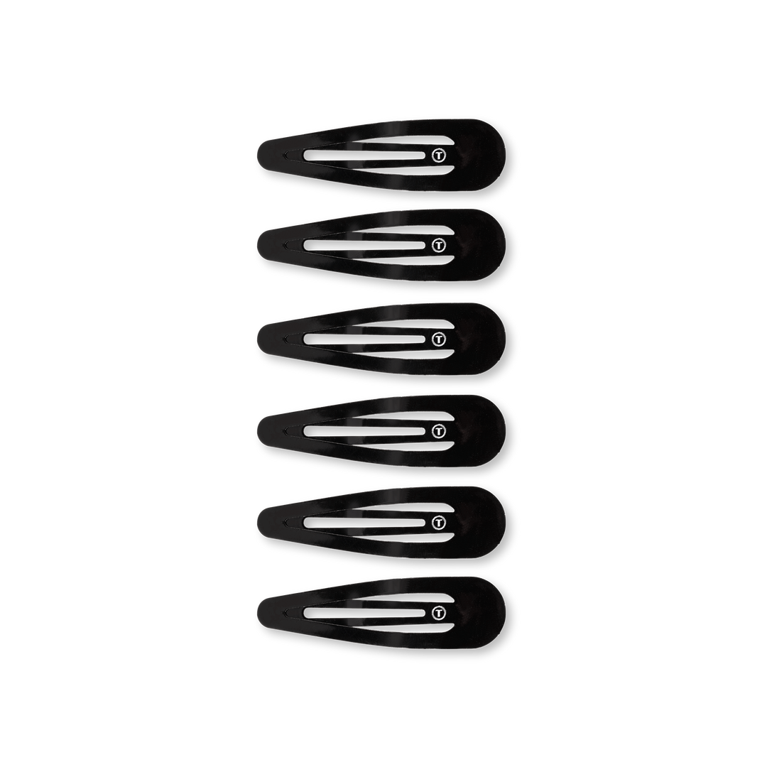 - Available in jet black and other color options, TELETIES Snap Clips combine everyday functionality with polished style to keep hair neatly in place all day.