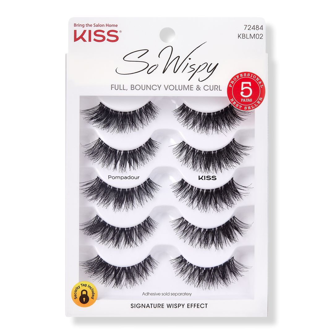 The Next-Gen Wispy has arrived with KISS So Wispy Lash Multipack, Pompadour! Volumizing Back-Tease Technology utilizes a salon styling technique that ups hair volume to create the most body-full, natural looking lashes ever. Unique crisscross pattern blends seamlessly with your natural lashes.