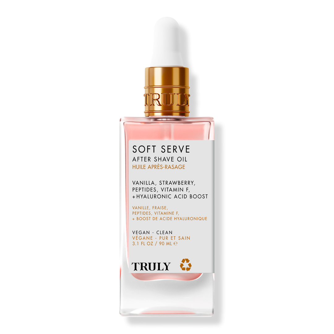 Save yourself from the pain of razor burn and ingrown hairs with Truly's Soft Serve After Shave Oil. Formulated with a precious blend of peptides, hyaluronic acid, and strawberry to gently exfoliate, hydrate, and accelerate the skin's healing process.
