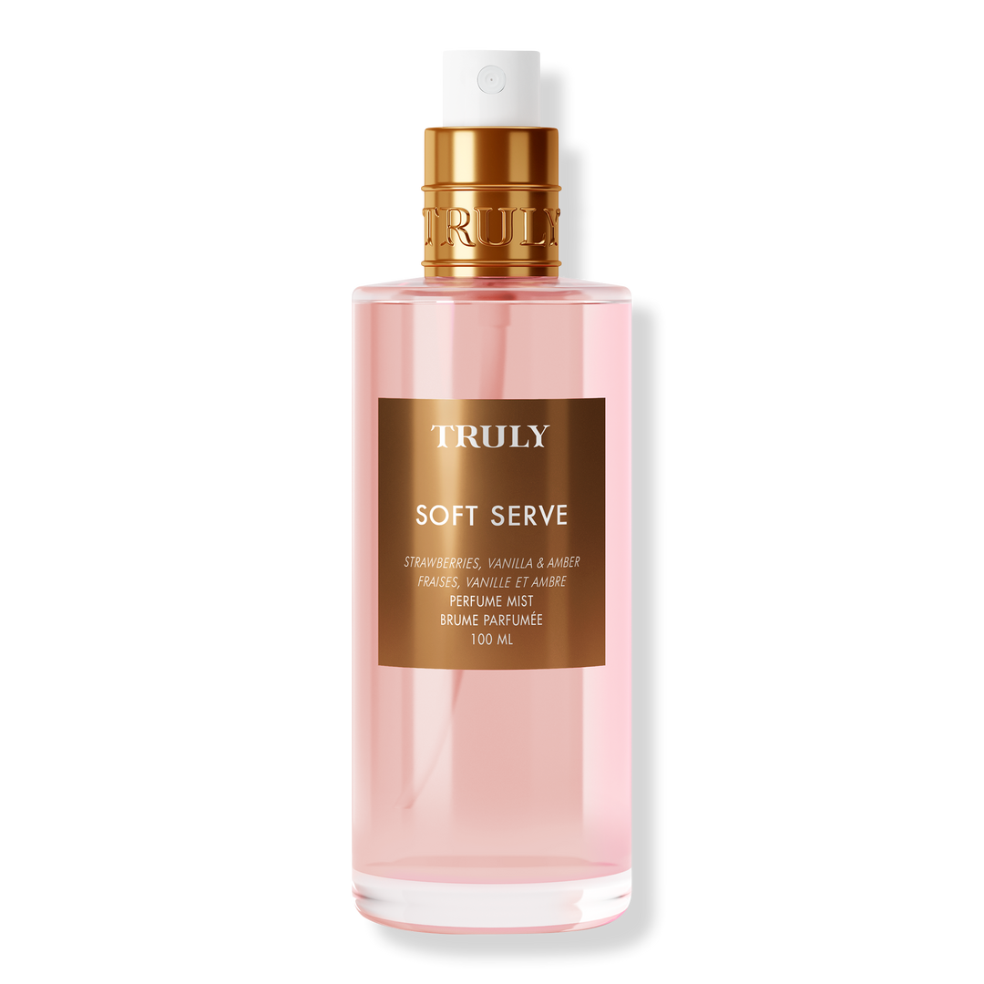 Truly's Soft Serve Perfume Mist is a scrumptious strawberries and cream scent that evokes heartwarming summer memories. Warmed with the sensuality of vanilla for a fresh, light & luxurious scent. With notes of vanilla, pear & amber.