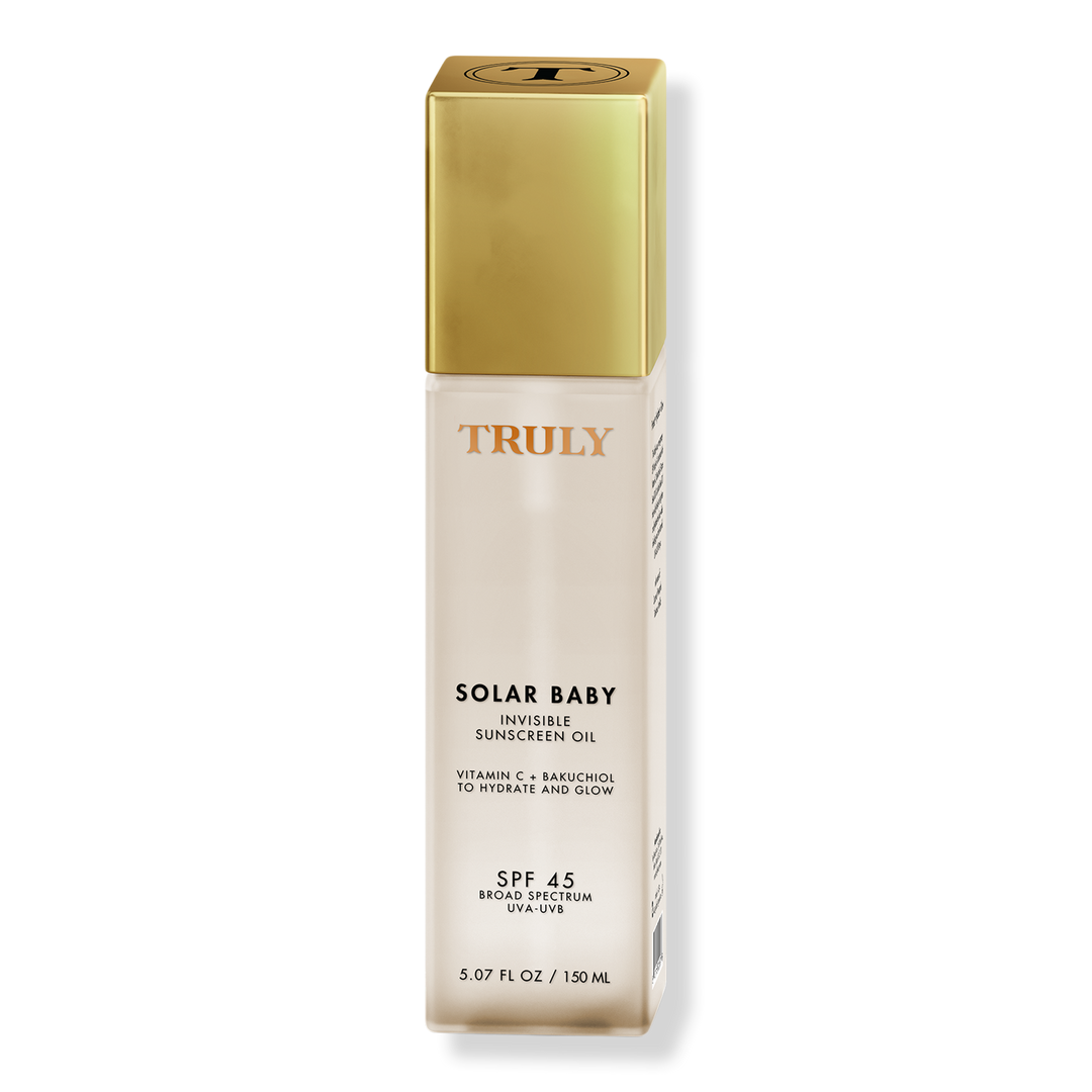 Truly’s Solar Baby SPF 45 Invisible Sunscreen Oil is boosted with vitamin C + bakuchiol to help brighten and hydrate your skin while shielding it from harmful UVA & UVB rays.