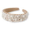 The Sonja Multipearl Headband by Locks & Mane is a luxurious headband covered in white and pale pearls. Each pearl is meticulously hand-placed to create a stunning design. This headband is the perfect choice for effortless styling with a hint of luxury.