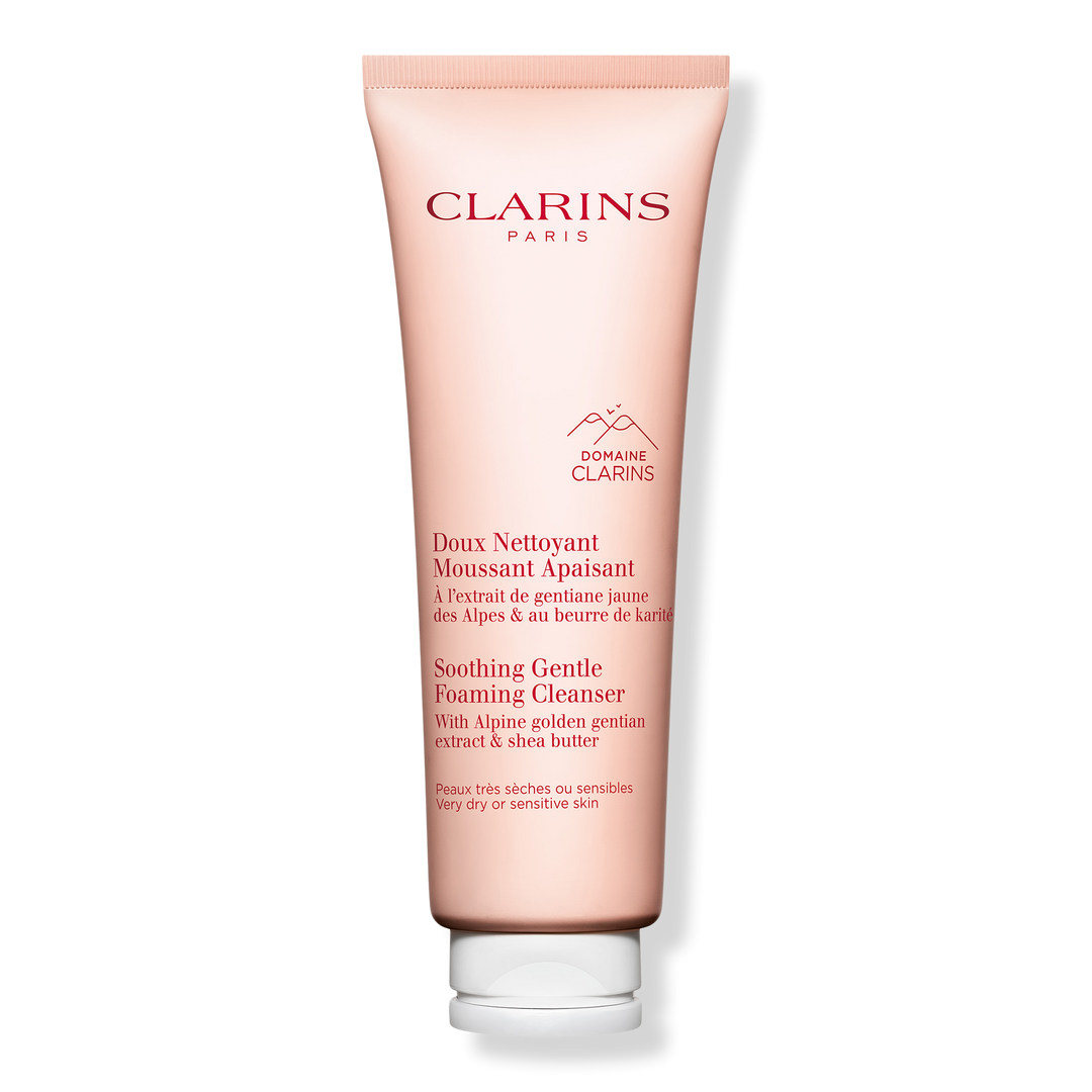 Clarins Soothing Gentle Foaming Face Cleanser with Shea Butter is a creamy foaming facial cleanser for very dry to sensitive skin removes makeup, pollution + impurities for soft, comfortable skin.