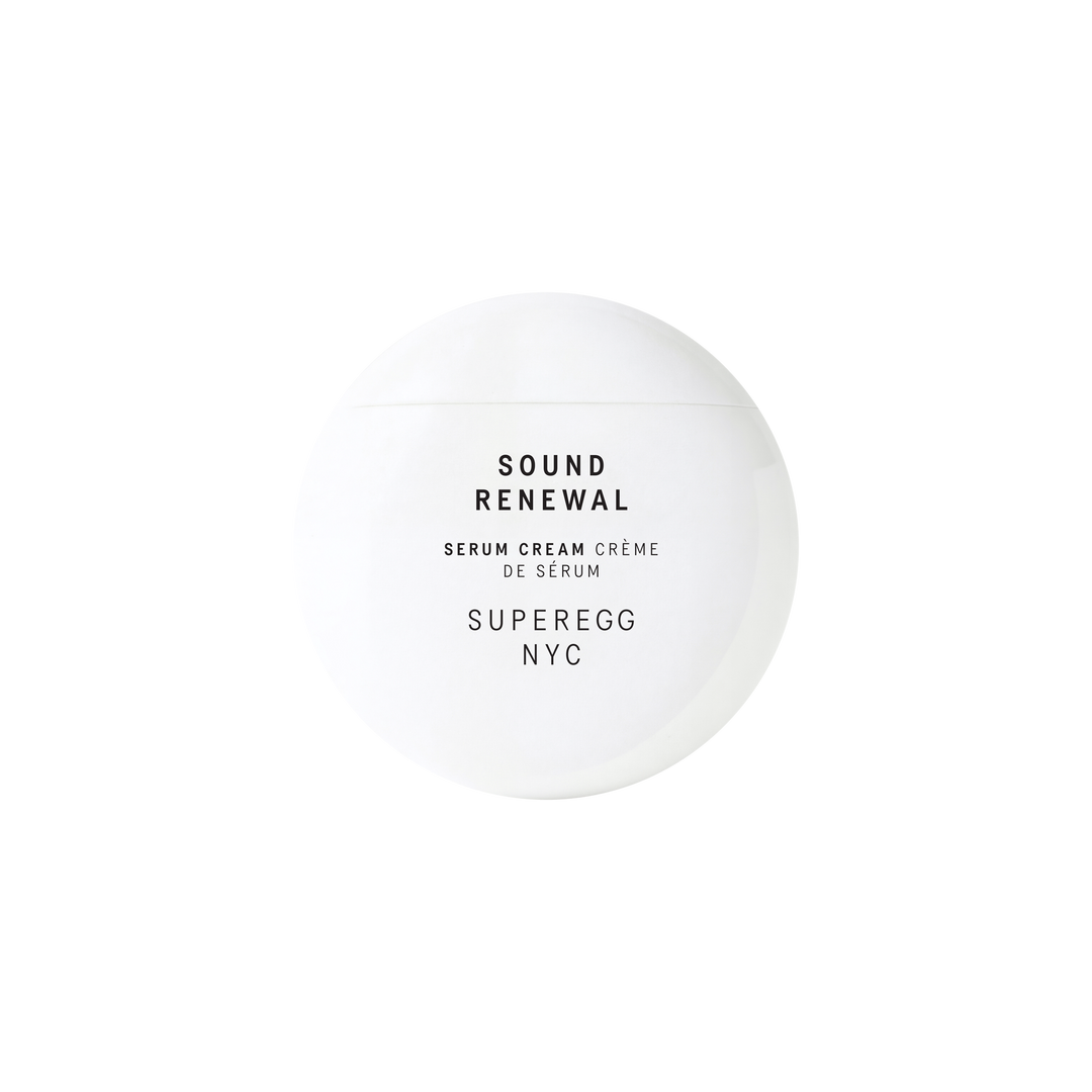 Superegg's Sounds Renewal Serum Cream is a daily-use moisturizer to strengthen the skin barrier while delivering long-lasting hydration and environmental protection. This hybrid serum-cream absorbs quickly and wears well under makeup, leaving a soft, luminous finish.