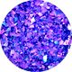 - Black jelly formula with red and blue iridescent flakes and scattered holographic glitters.