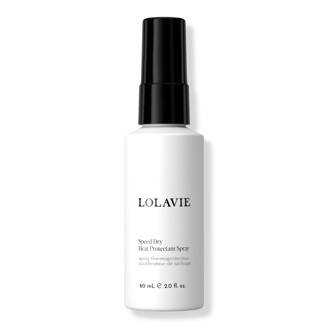 LolaVie Speed Dry Heat Protectant Spray is a weightless, dual-use mist that accelerates drying time while protecting hair from heat up to 450°F and reducing frizz for smooth, shiny results without weight.