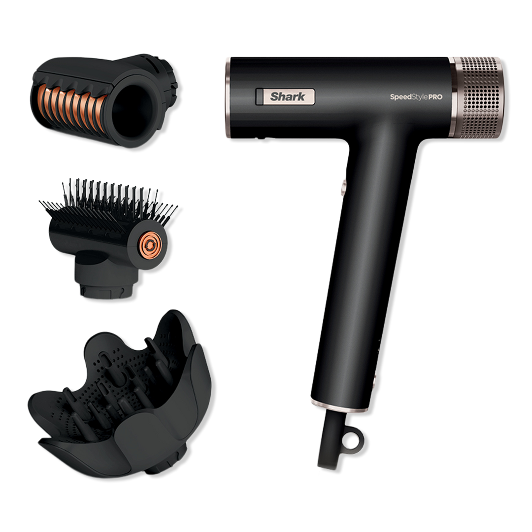 Meet the Shark SpeedStyle Pro Performance High-Velocity Hair Dryer System & Diffuser. Style salon-quality looks on curly and coily hair with professional power at home, no heat damage. Includes Scalp Shield - designed to protect 100% of new hair growth from extreme heat.