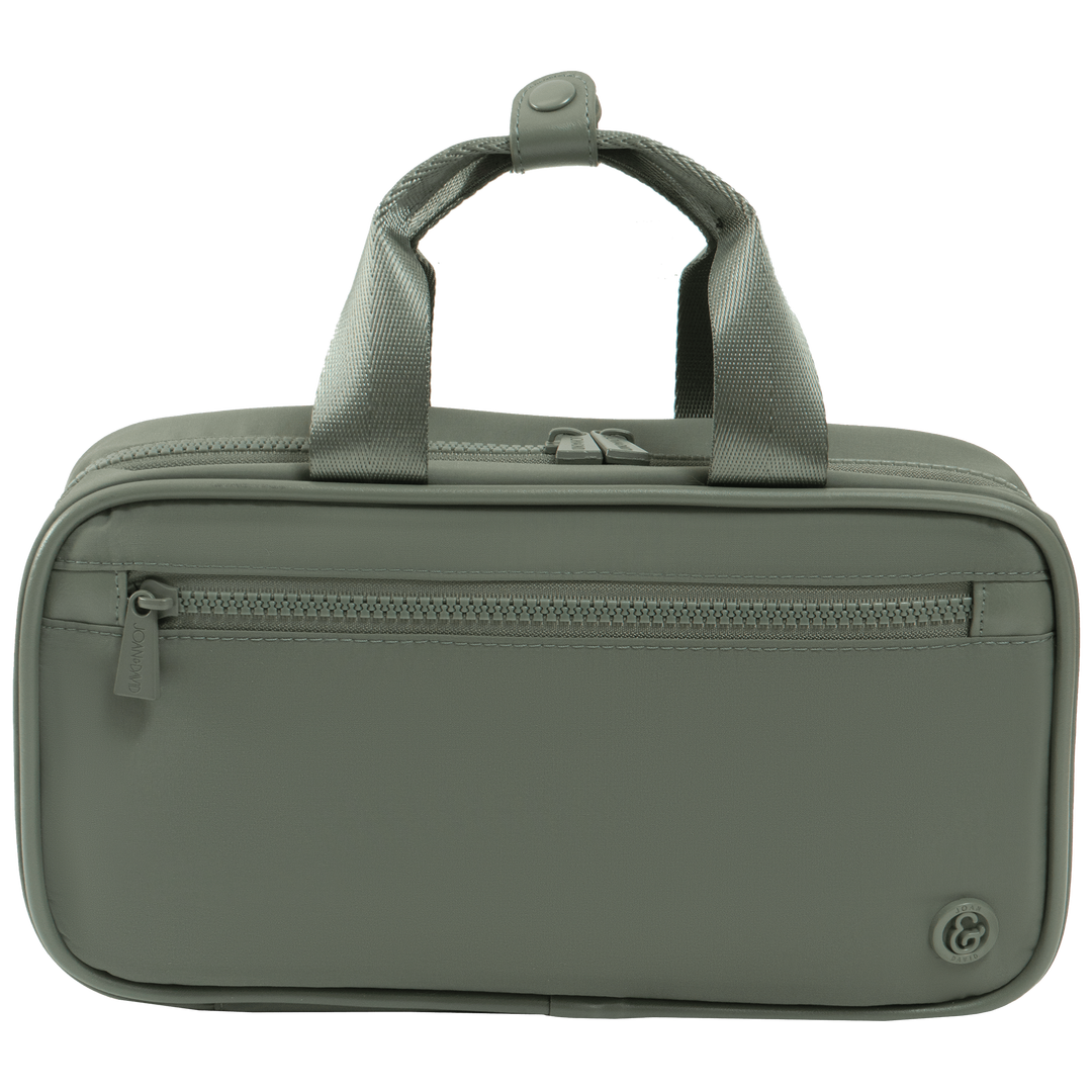Unzip the Joan & David Sport Nylon Double Handle Hanging Toiletry Case and arrange your toiletries inside the designated compartments to keep items secure and easy to find. Use the clear sections to quickly locate essentials without unpacking. When in use, hang the case by the built-in hook or carry it using the double handles for convenient transport. Once packed, zip it closed and place it in your luggage for organized, worry-free travel at home or on the go.