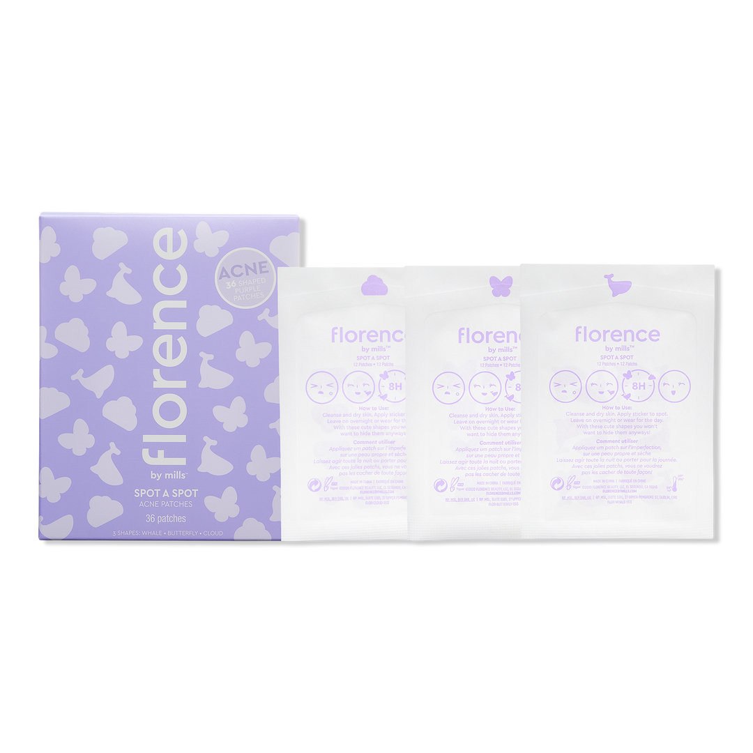 The florence by mills Spot a Spot Acne Patches are cute acne spot stickers and the ultimate shields for every spot, dot, or blemish peeking out of skin. These patches help protect spots from bacteria and can be used overnight or during the day to help reduce spots. Dermatologist tested.