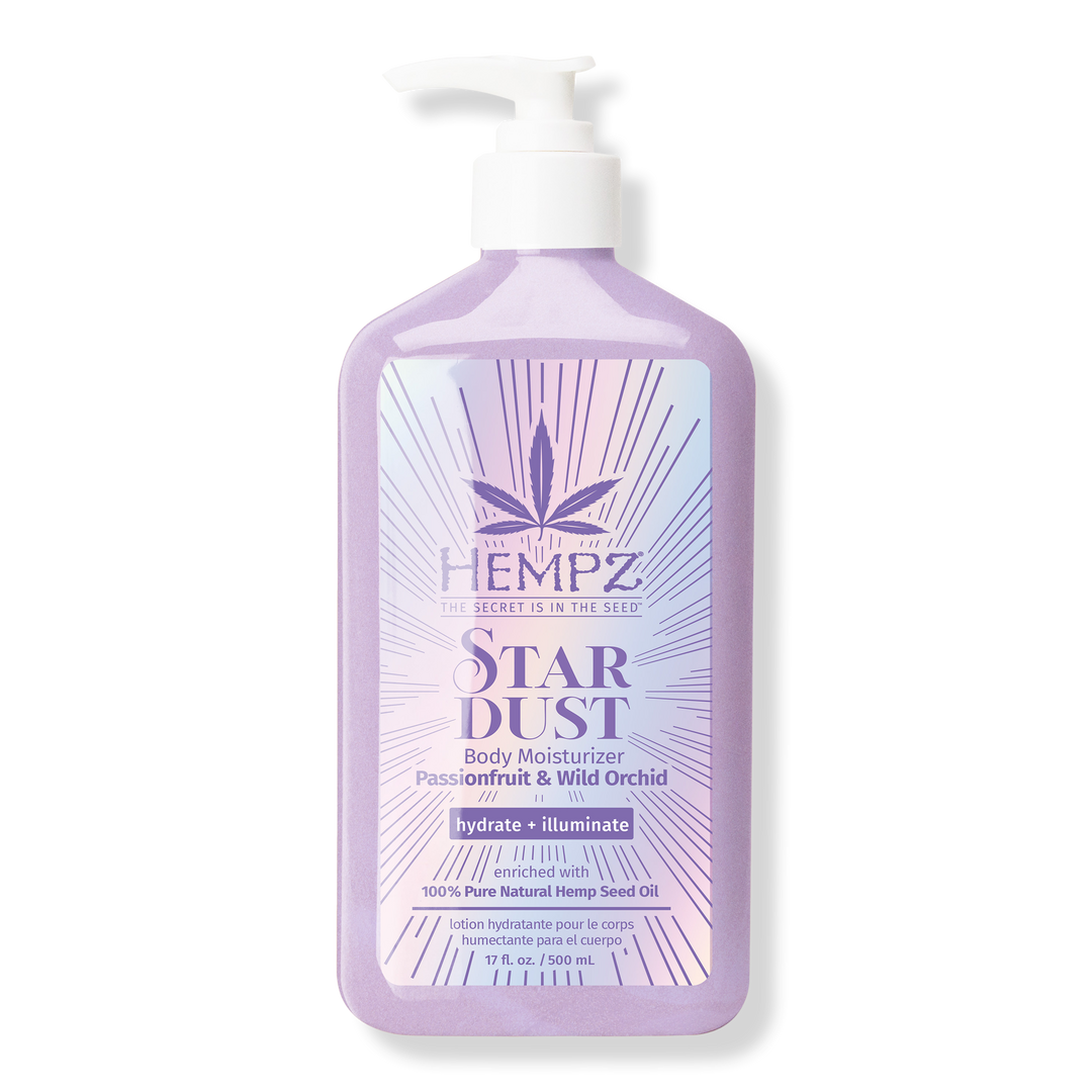 Illuminate your skin with Hempz Star Dust Body Moisturizer! This lightweight shimmering body lotion hydrates and softens your skin while adding silver shimmer for the perfect highlight. Packed with Passionfruit Seed Oil, Orchid Extract, Hemp Seed Oil, and Shea Butter to soften the skin barrier.