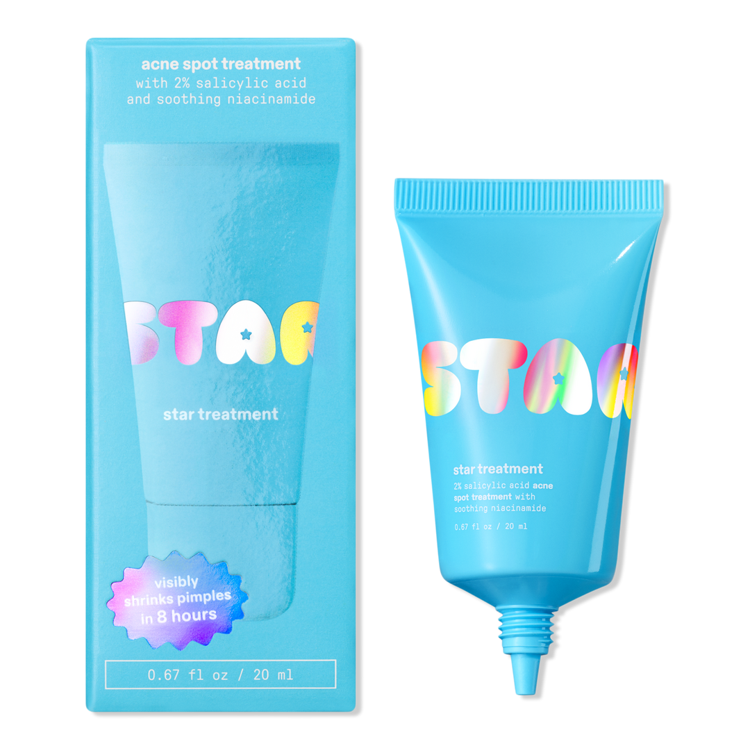 Starface Star Treatment is a powerful 2% salicylic acid acne spot treatment that visibly shrinks pimples in eight hours and prevents new breakouts from forming. A calming combination of niacinamide and aloe vera soothes irritation and reduces redness.