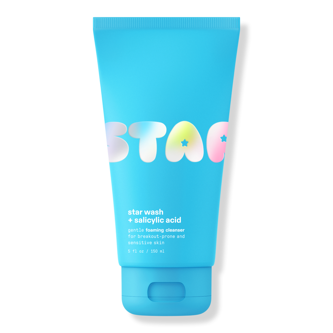 Starface Star Wash + Salicylic Acid is an oil-free foaming face wash formulated for breakout-prone and sensitive skin. A powerful combination of salicylic acid, hyaluronic acid, and glycerin helps minimize breakouts and unclog pores as you cleanse.