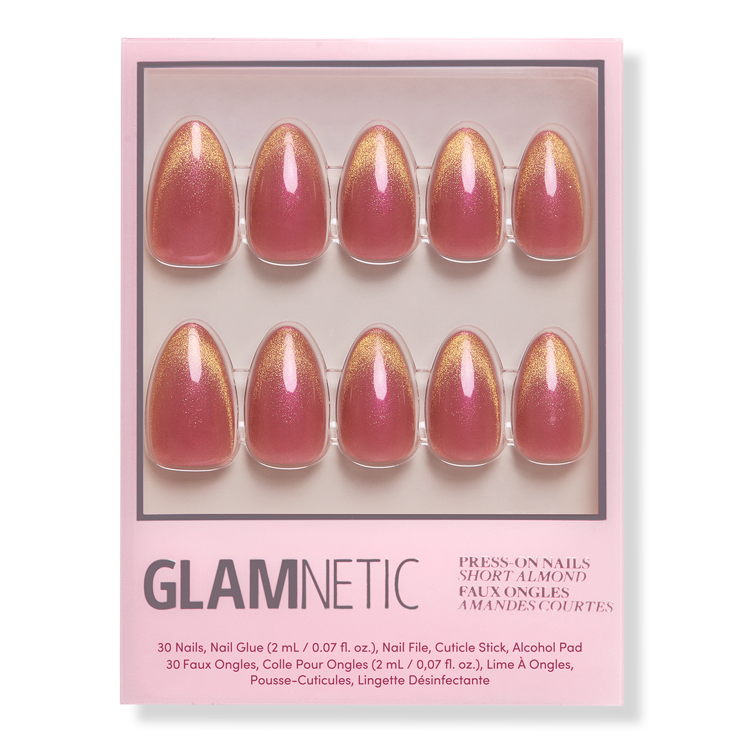 - Align Glamnetic nails with cuticle line and apply at a downward angle. Press down firmly and hold for 10-20 seconds.