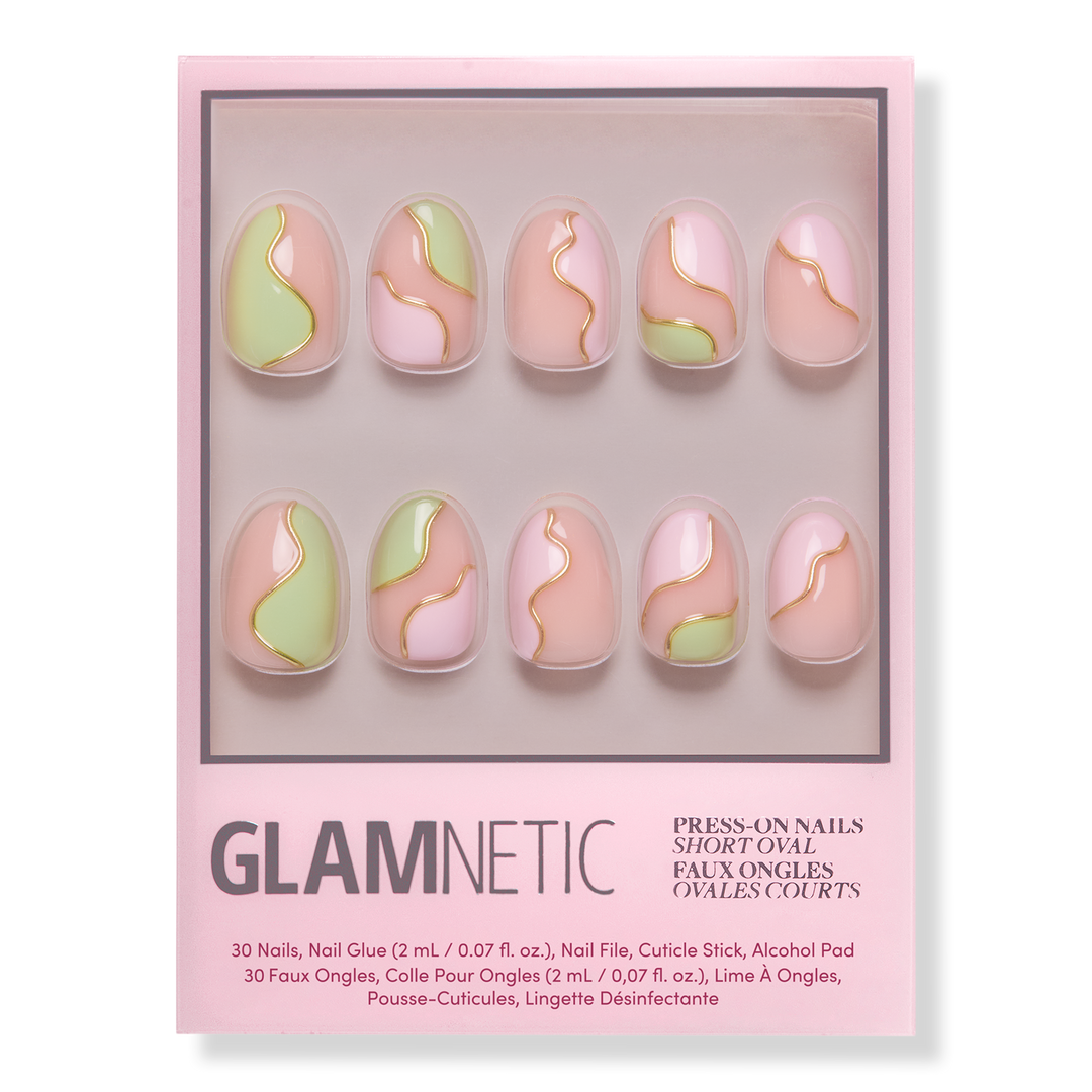 - Align Glamnetic nails with cuticle line and apply at a downward angle. Press down firmly and hold for 10-20 seconds.