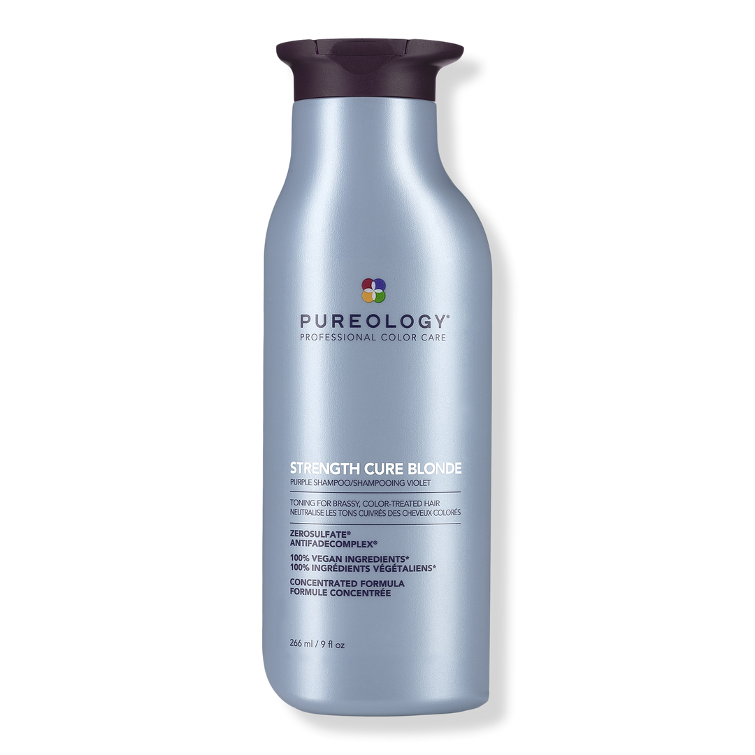 Pureology's Strength Cure Blonde Purple Shampoo is a rich-lather, sulfate-free purple shampoo that tones and fortifies brassy, damaged and lightened hair.