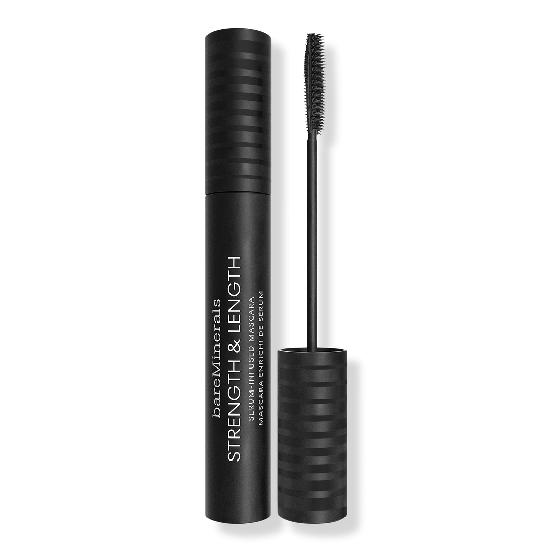 BareMinerals STRENGTH & LENGTH Serum-Infused Mascara is made with a plant-powered serum with Red Clover Flower and peptides, proven to strengthen and enhance for visibly longer, healthier lashes over time. The paddle brush instantly lengthens, lifts and defines for your longest lashes ever.